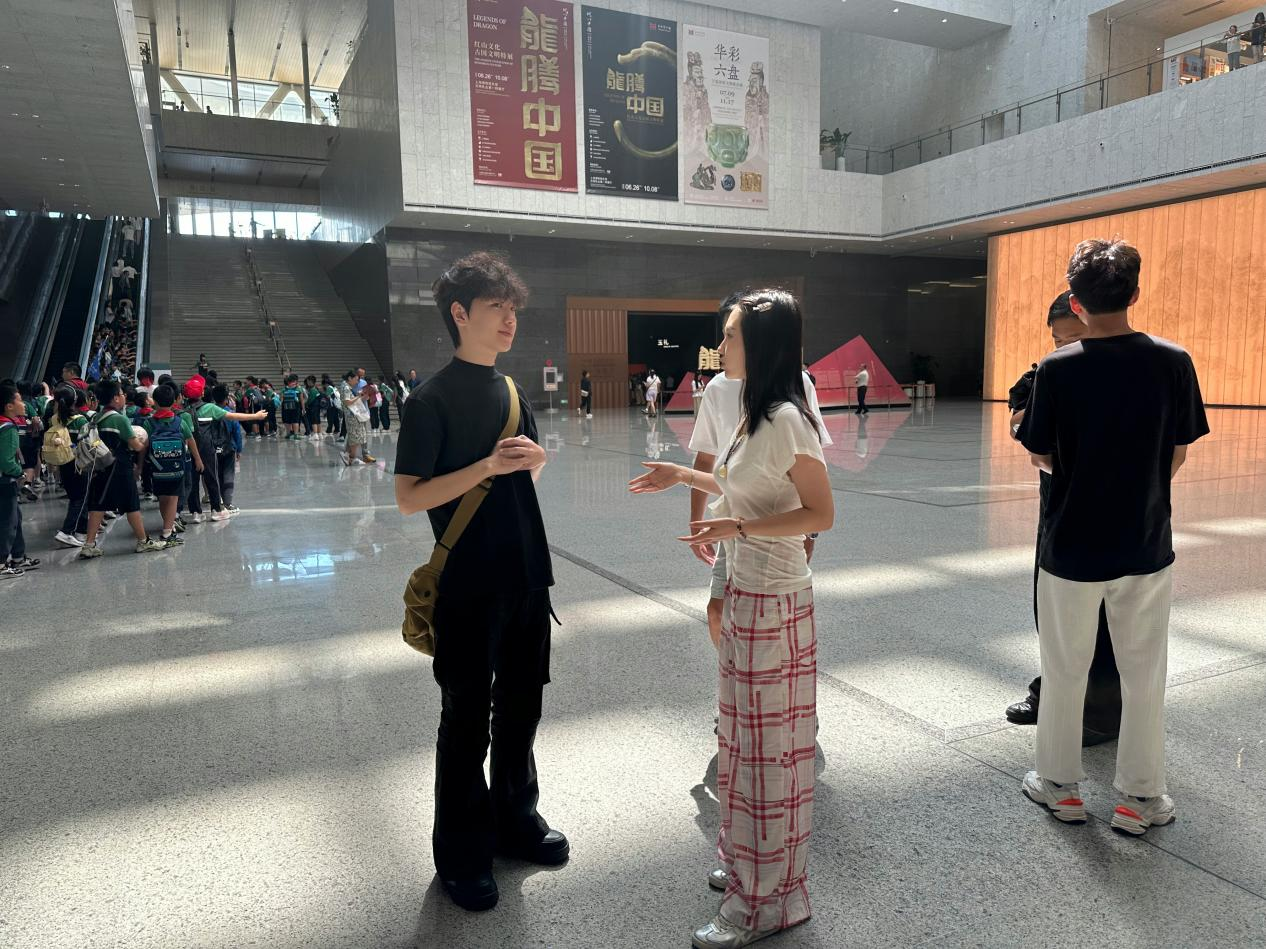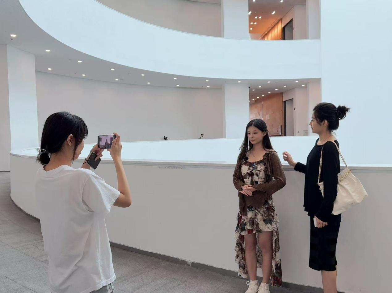 聚焦 “人文景观” 主题,实训队伍走进广州艺术博物院(广州美术馆新馆)。这座承载广州艺术记忆的文化地标,馆藏涵盖书画、雕塑、工艺美术等多个门类,丰富的艺术珍品为学生提供了沉浸式艺术熏陶环境。在专业教师指导下,学生们围绕艺术作品解读、文化传播表达等方向展开实训:有的驻足书画展区,尝试以播音语言还原作品创作背景与艺术特色;有的聚焦馆藏文物,策划小型文化访谈节目探讨其背后的历史价值。通过近距离接触艺术瑰宝,学生们进一步掌握了 “以声传情、以言表意” 的人文类节目主持技巧,提升了文化传播的专业能力。