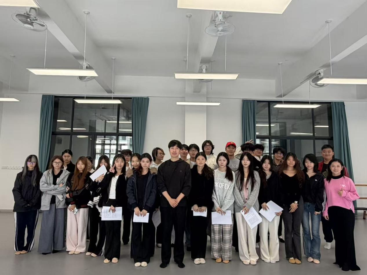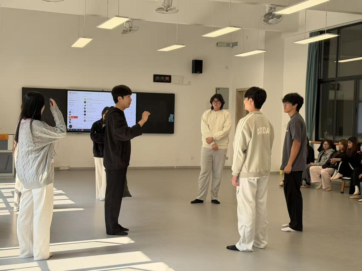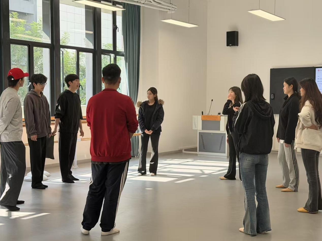 在课程安排上,张津赫老师与校内教师紧密协作,构建了循序渐进的教学内容。首日课程聚焦基础能力夯实,为表演专业学生开设“表演基础”与“台词基础”课程,分别围绕“演员的七种能力”与“寻找声音的位置”核心主题展开教学;播音主持专业学生则在下午的课程中,于A3-411教室开展普通话与台词训练,筑牢专业根基。次日课程转向角色塑造,表演专业学生通过单人或多人台词片段演练,深入理解人物内核;播音主持专业学生则以指定与自备朗诵片段相结合的形式,提升语言表达的感染力与表现力。第三日的教学则聚焦实践应用,通过戏剧表演片段与影视片段台词练习,让学生在实战场景中检验学习成果,课程内容还会根据首日课堂反馈动态调整,确保教学效果最大化。