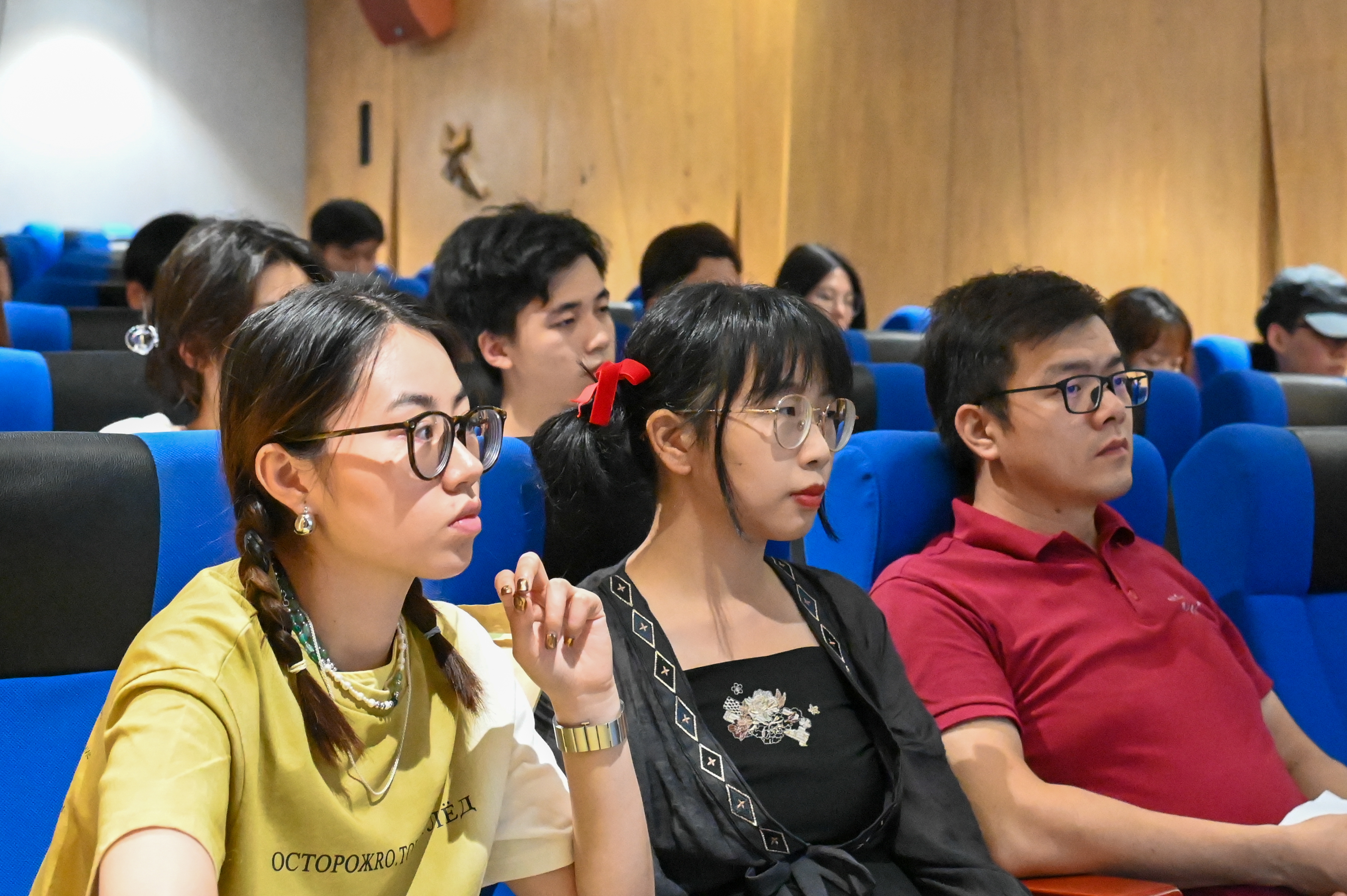 在与学生的互动中,鲍恩老师引经据典,时而犀利时而风趣的言辞引得同学们欢笑阵阵,把现场气氛调动得十分活跃。